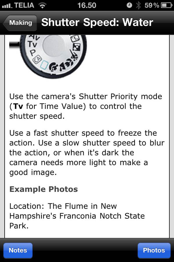 F.eks. dette vandfald på det første billede, har man brugt en hurtig lukkertid.